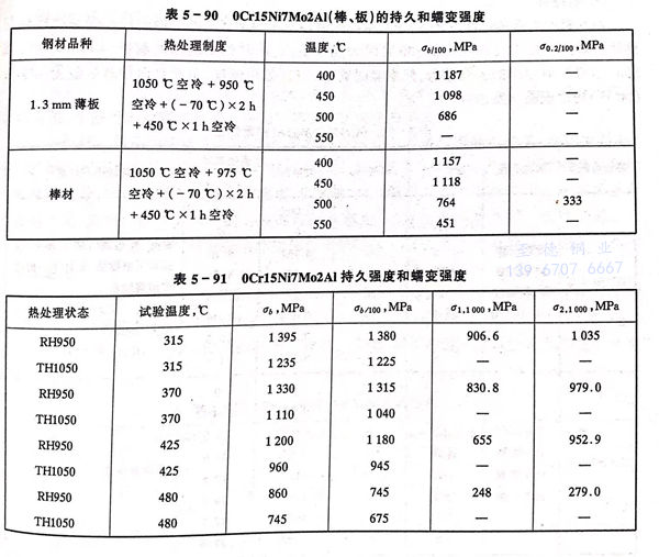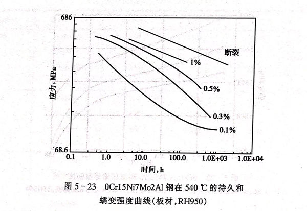 07Cr15Ni7Mo2Al、PH15-7Mo 不銹鋼的持久和(he)蠕變行為見表(biao) 5-90 和(he) 表(biao) 5-91 及圖(tu) 5-23 。