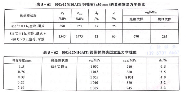 00Cr12Ni10AlTi 不銹鋼的物理性能見表(biao)5-65。