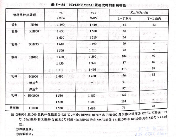 04Cr13Ni8Mo2Al、0Cr13Ni8Mo2Al、PH13-8Mo 不(bu)銹鋼(gang)的室溫(wen)力學性能(neng)標準規定值(zhi)和實測值(zhi)分別見(jian)表(biao) 5-52 和 表(biao) 5-53。