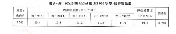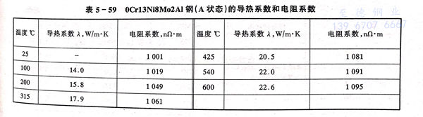 04Cr13Ni8Mo2Al、0Cr13Ni8Mo2Al、PH13-8Mo 不銹(xiu)鋼的物理性能(neng)見(jian)表(biao)5-58和表(biao)5-59。