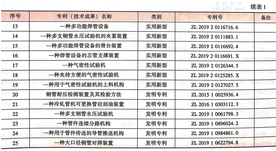 青(qing)山鋼管(guan)2008年(nian)組(zu)建了(le)(le)自(zi)己的(de)研究(jiu)開(kai)發(fa)中(zhong)心,被評為(wei)浙江省高(gao)新(xin)技(ji)術(shu)企業研究(jiu)開(kai)發(fa)中(zhong)心,國(guo)家(jia)級實驗(yan)室(shi)CNAS認證的(de)實驗(yan)室(shi),占地面積450平(ping)方米(mi)(mi),三層(ceng)共1350平(ping)方米(mi)(mi);實驗(yan)室(shi)通過了(le)(le)中(zhong)國(guo)合格評定(ding)國(guo)家(jia)認可(ke)委員會CNAS認證,具備(bei)國(guo)內、國(guo)際標準檢(jian)(jian)測能力,擁有(you)(you)高(gao)級工程師5人,技(ji)術(shu)人員12人的(de)專業技(ji)術(shu)團隊(dui),可(ke)以(yi)進行常規物理性能檢(jian)(jian)測、化學分(fen)析(xi)檢(jian)(jian)測、金相分(fen)析(xi)、晶(jing)間腐蝕、高(gao)低溫沖擊試驗(yan)等。榮獲過2項浙江省科(ke)技(ji)技(ji)術(shu)成果,擁有(you)(you)自(zi)主產權專利(li)技(ji)術(shu)包括發(fa)明(ming)專利(li)5項,實用新(xin)型(xing)36項,已在申請中(zhong)發(fa)明(ming)專利(li)4項,實用新(xin)型(xing)6項,具體情(qing)況見表1。