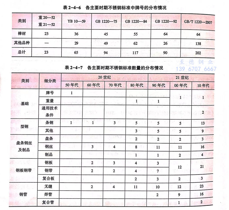 綜(zong)上所述,我(wo)國不(bu)銹鋼標準經歷了起步、調整(zheng)、發展(zhan)和(he)(he)改革等四個階(jie)段,使我(wo)國不(bu)銹鋼標準牌號(見表2-4-6)、數量(見表2-4-7)、標準水(shui)平和(he)(he)國際通用性都有(you)長(chang)足的(de)(de)進(jin)步和(he)(he)發展(zhan),體(ti)現了我(wo)國不(bu)銹鋼標準由生產型向(xiang)貿易型的(de)(de)轉(zhuan)變,深刻(ke)展(zhan)現了我(wo)國計劃(hua)經濟向(xiang)市場經濟的(de)(de)轉(zhuan)變。