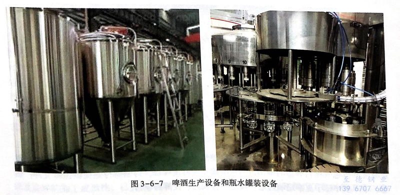 不銹鋼也被廣泛用于食品加工機械(飲料、果蔬、烘焙)、肉類機械設備(深加工、屠宰)、食品通用設備(罐裝、殺菌、干燥)、商用廚房設備(工程爐灶、洗漱、凈化)、食品包裝機械(通用、貼簽、封口)等(見圖3-6-7~圖3-6-11)。直接接觸食品的機械用不銹鋼材料,耐腐蝕性能最低不能低于304不銹鋼,常用材料為304不銹鋼、304L不銹鋼、316不銹(xiu)鋼、316L不銹鋼,抗菌不銹鋼是首選材料。