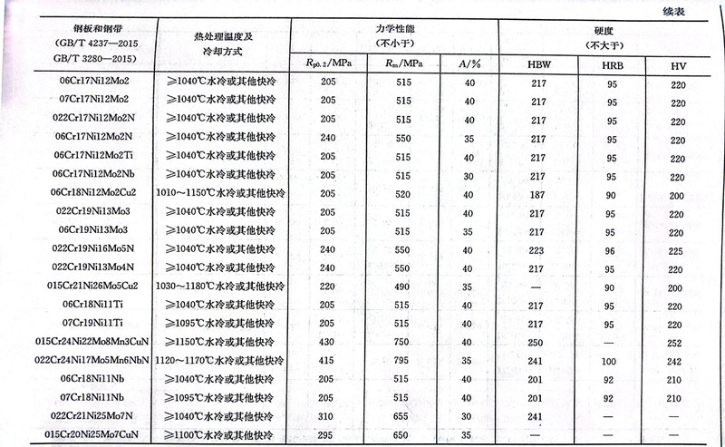 06Cr18Ni12Mo2Cu2 不(bu)銹鋼經固溶處理(li)后的力學性能見(jian)表9.12。該(gai)鋼的焊接(jie)(jie)性能良(liang)好,可用做焊接(jie)(jie)結構件和管道(dao)、容器等。