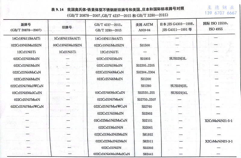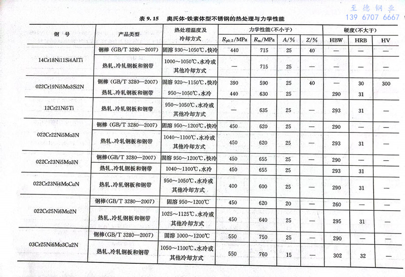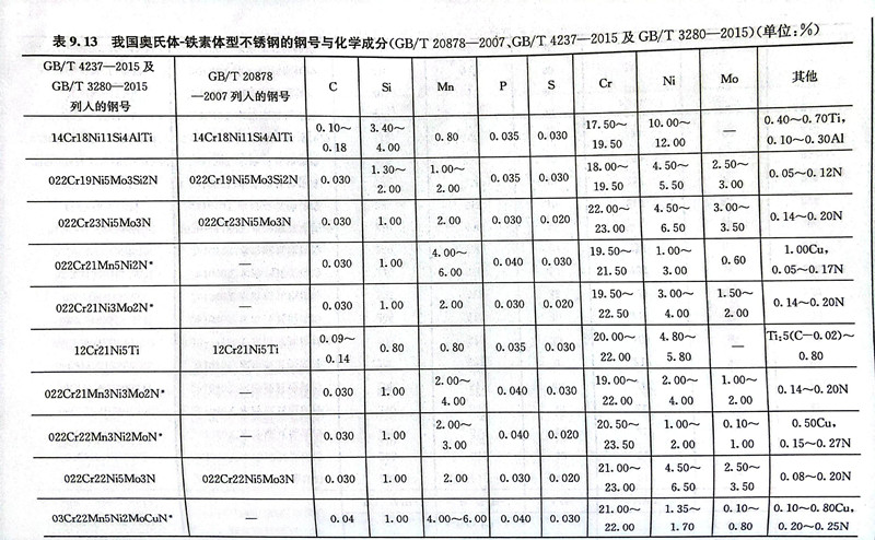 我國常用雙相(xiang)不銹(xiu)鋼(gang)的鋼號及其力學性能見表9.13和表9.15。