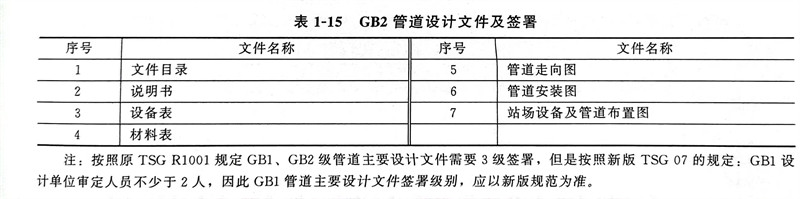 注:按(an)照原TSG R1001規定GB1、GB2級管(guan)道(dao)(dao)主(zhu)要設計(ji)文件(jian)需要3級簽署,但(dan)是按(an)照新版TSG 07的規定:GB1設計(ji)單位(wei)審(shen)定人員不少于2人,因此GB1管(guan)道(dao)(dao)主(zhu)要設計(ji)文件(jian)簽署級別,應以新版規范為準。