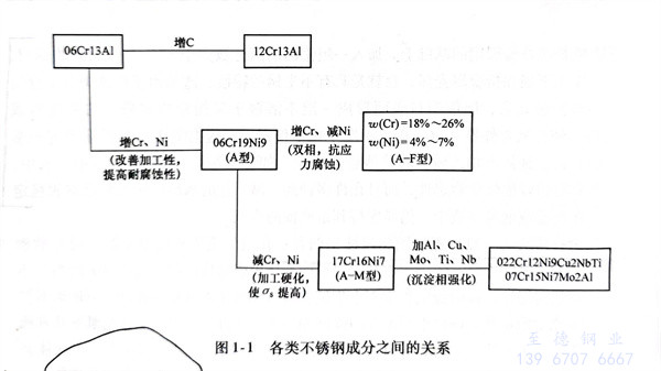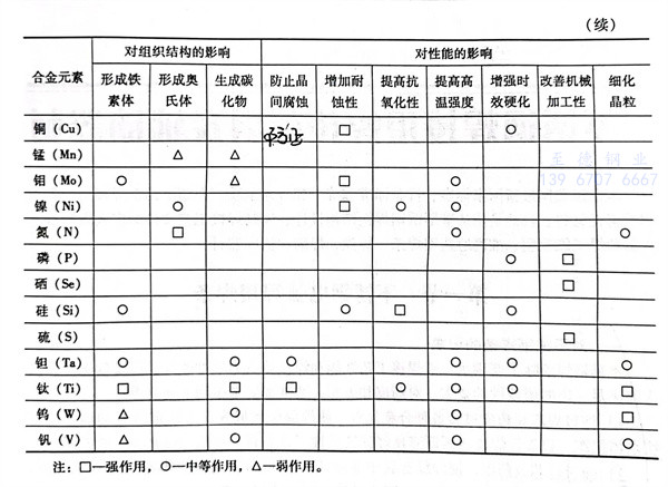 上(shang)述合金(jin)元(yuan)(yuan)(yuan)(yuan)素(su)(su)(su)對(dui)鋼(gang)的(de)(de)作用(yong)不(bu)是(shi)簡單(dan)的(de)(de)疊(die)加,也(ye)不(bu)是(shi)相互抵消的(de)(de)。它們相互之間(jian)有(you)(you)時會發生新的(de)(de)物理化(hua)學作用(yong),往往會引起強化(hua)力學性能(neng)的(de)(de)作用(yong)。各種合金(jin)元(yuan)(yuan)(yuan)(yuan)素(su)(su)(su)對(dui)不(bu)銹鋼(gang)組織結構(gou)和性能(neng)的(de)(de)影(ying)響見(jian)表1-14,亦可見(jian)圖1-1、圖1-2。從(cong)表中可以看出,合金(jin)元(yuan)(yuan)(yuan)(yuan)素(su)(su)(su)對(dui)不(bu)銹鋼(gang)組織的(de)(de)影(ying)響基(ji)本上(shang)分三大類(lei):第一類(lei)是(shi)形成(cheng)鐵(tie)素(su)(su)(su)體的(de)(de)元(yuan)(yuan)(yuan)(yuan)素(su)(su)(su),有(you)(you)鉻(ge)、硅、鋁(lv)、鉬、鈦、鈮(ni)(ni)等;第二類(lei)是(shi)形成(cheng)奧氏體的(de)(de)元(yuan)(yuan)(yuan)(yuan)素(su)(su)(su),有(you)(you)碳(tan)(tan)、氮(dan)(dan)、鎳(nie)、錳、銅等,其中碳(tan)(tan)和氮(dan)(dan)的(de)(de)作用(yong)程度最(zui)大;第三類(lei)是(shi)形成(cheng)碳(tan)(tan)化(hua)物的(de)(de)元(yuan)(yuan)(yuan)(yuan)素(su)(su)(su),有(you)(you)鈮(ni)(ni)、鈦、碳(tan)(tan)、鉻(ge)、鎢、錳、鉬等。加入(ru)銅、鋁(lv)、鈦、鈮(ni)(ni)、氮(dan)(dan)等元(yuan)(yuan)(yuan)(yuan)素(su)(su)(su)能(neng)促使(shi)鋼(gang)產生彌散硬化(hua),從(cong)而提高鋼(gang)的(de)(de)熱(re)強性。