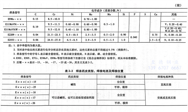 不銹鋼焊(han)(han)條型(xing)號(hao)按GB/T 983-1995規(gui)定(ding),焊(han)(han)條熔敷(fu)金(jin)屬(shu)中鉻的(de)質量分數要大于10.5%,鐵的(de)含量應超過(guo)其他任何(he)元素。根據焊(han)(han)條熔敷(fu)金(jin)屬(shu)的(de)化(hua)學成(cheng)分、藥皮類型(xing)、焊(han)(han)接位置(zhi)以及焊(han)(han)接電流種類劃(hua)分的(de)型(xing)號(hao)見(jian) 表2-1和表2-2。