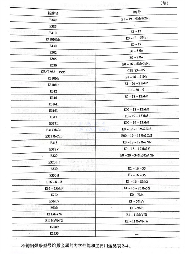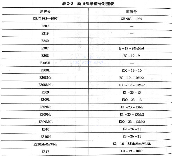 不銹(xiu)鋼焊條(tiao)GB/T 983-1995與(yu)GB 983-1985的(de)型號(hao)表(biao)示方法,有(you)很大(da)區別,其對(dui)照表(biao)見表(biao)2-3。