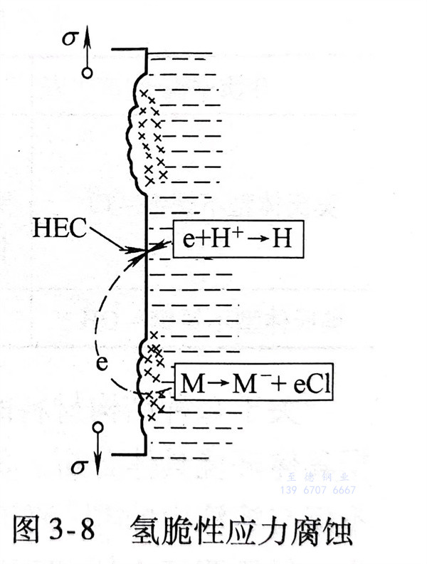 應力腐蝕的最大特點之一是腐蝕介質與圖3-8 氫脆性應力腐蝕材料組合上有選擇性,在此特定組合之外的條件不會產生應力 裂紋擴展機理的示意圖腐蝕。引起不銹(xiu)鋼應力腐蝕的介質,從美國全國腐蝕工程師協會提供的資料中選取一些數據列于表3-3。發生在敏感介質中應力腐蝕開裂的類型見表3-4。為了減輕或消除特定環境中的應力腐蝕,可以在介質中添加緩沖劑見表3-5。