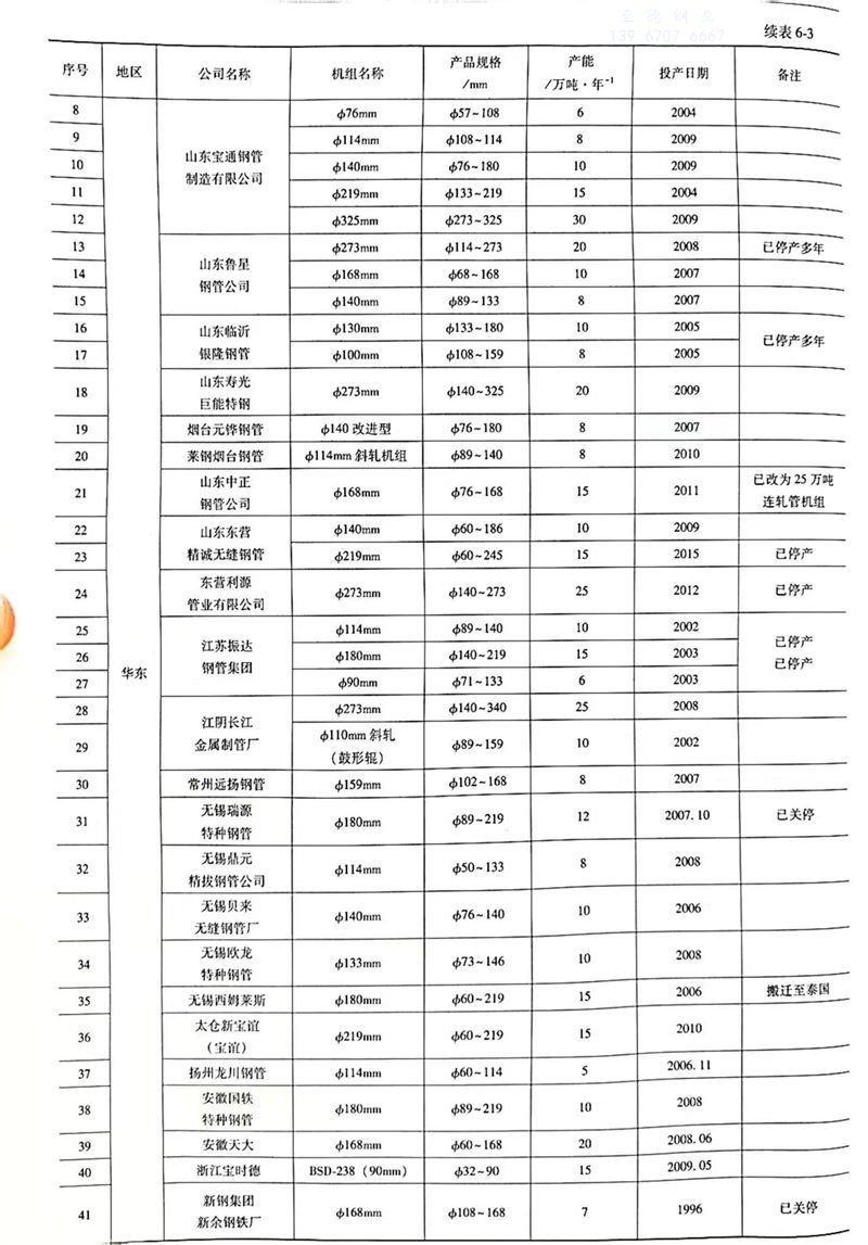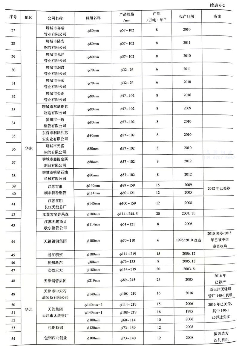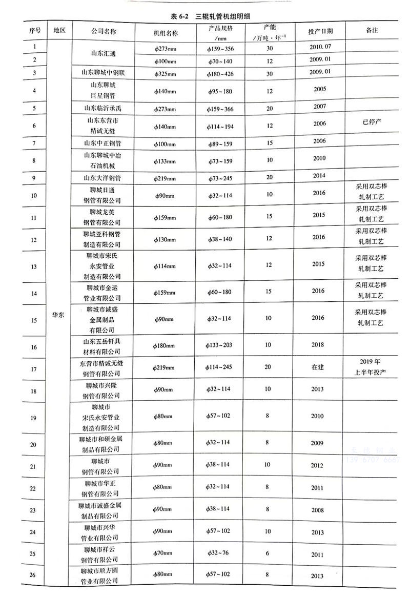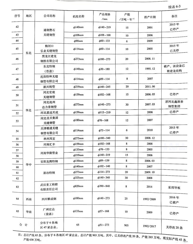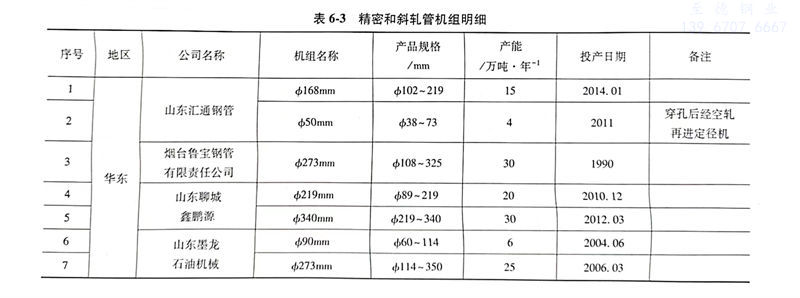 精密和(he)斜(xie)軋管機組明(ming)細如表6-3所示。