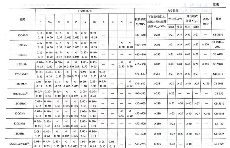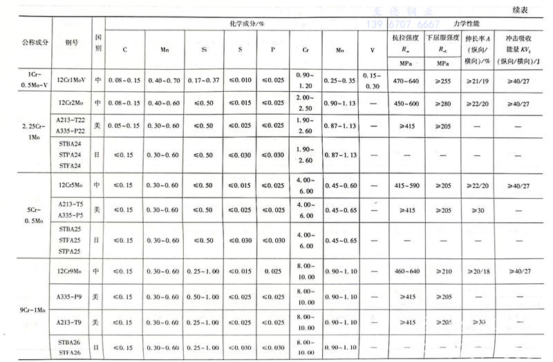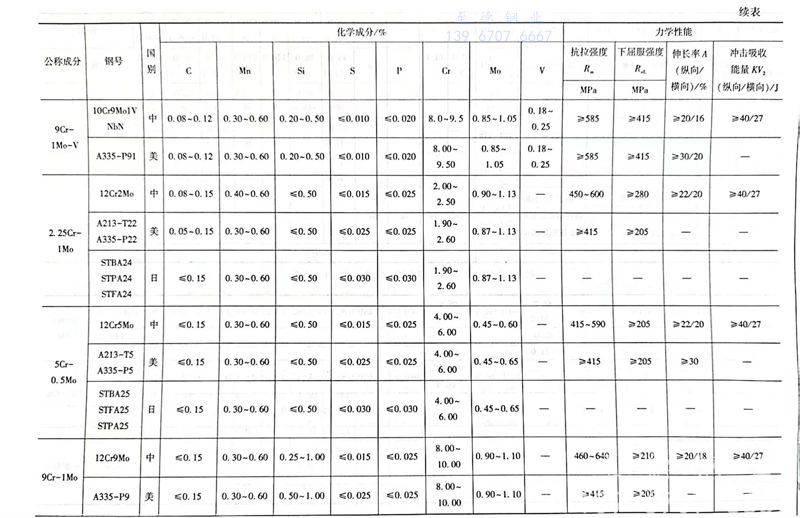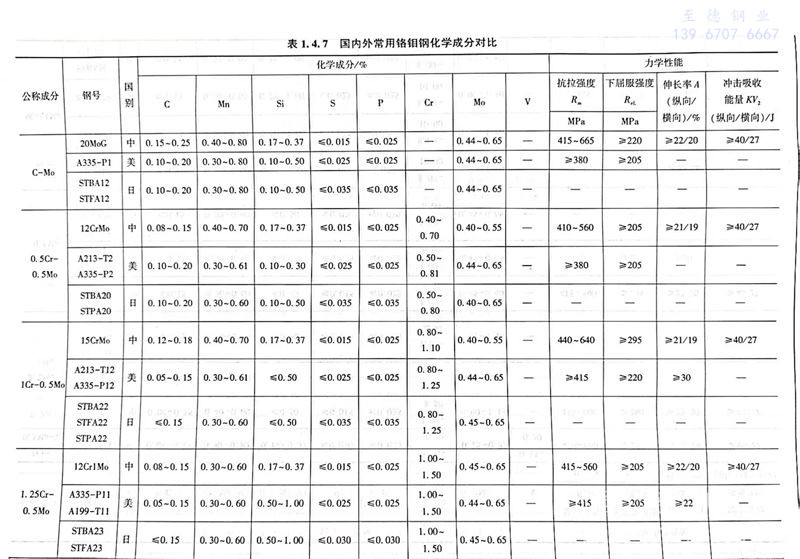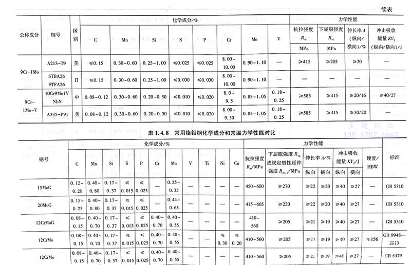 常(chang)用鉻鉬鋼化(hua)學成分和常(chang)溫力學性能對比見表(biao)1.4.8。