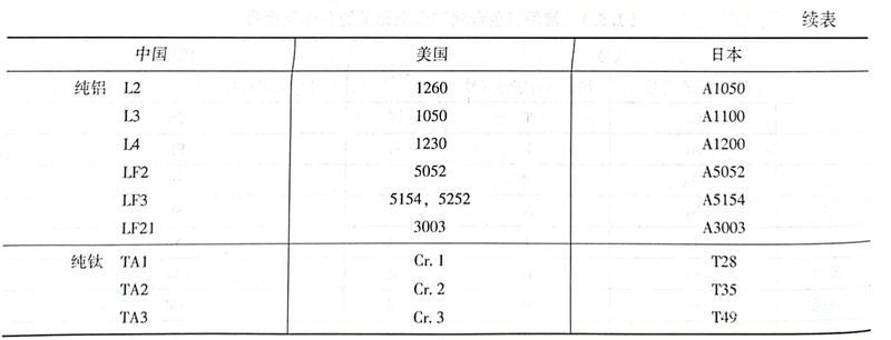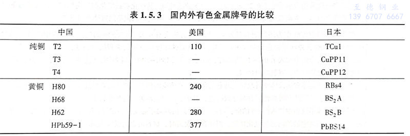 國內(nei)外(wai)有色金(jin)屬牌號的比較見表1.5.3