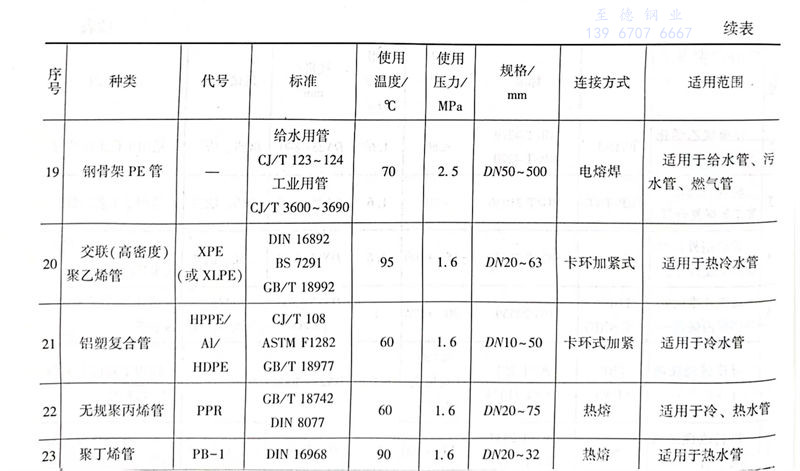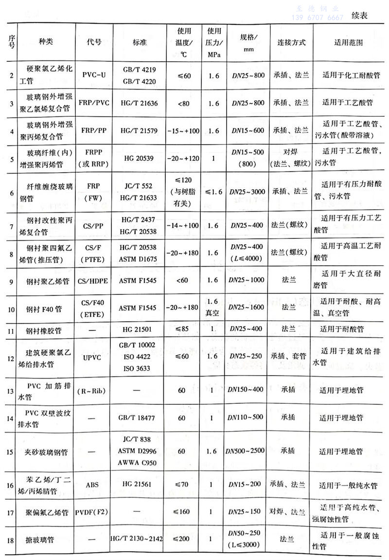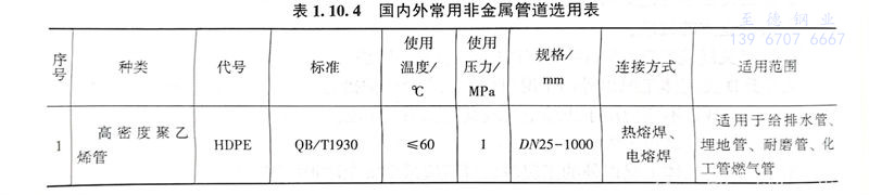 國內(nei)外常用非金屬(shu)管道選用表(biao)見(jian)表(biao)1.10.4。