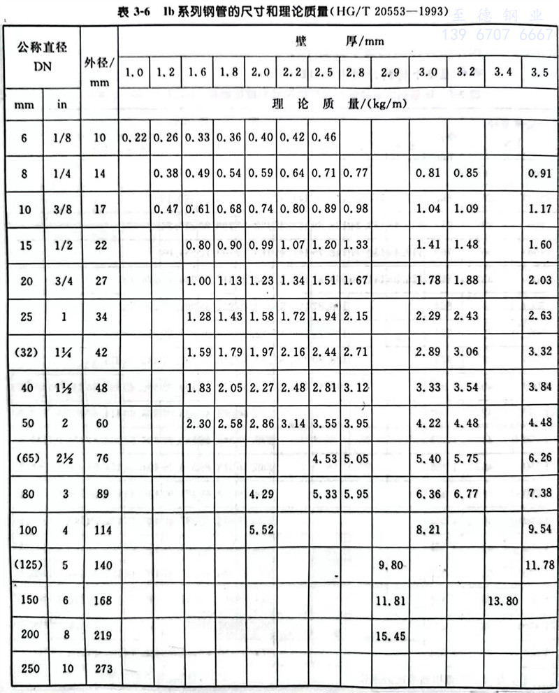Ⅰb系列鋼(gang)管的(de)尺寸和理論質量(liang)見表(biao)3-6。
