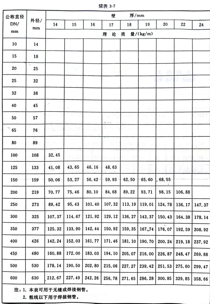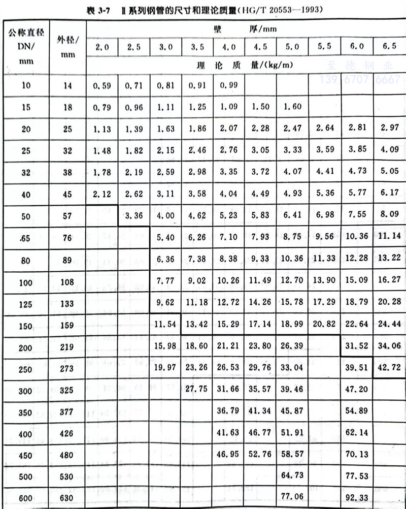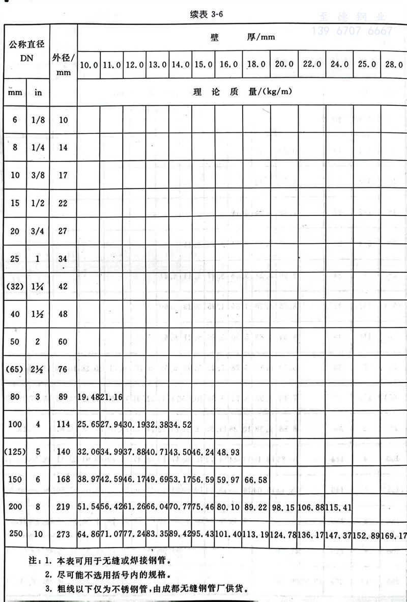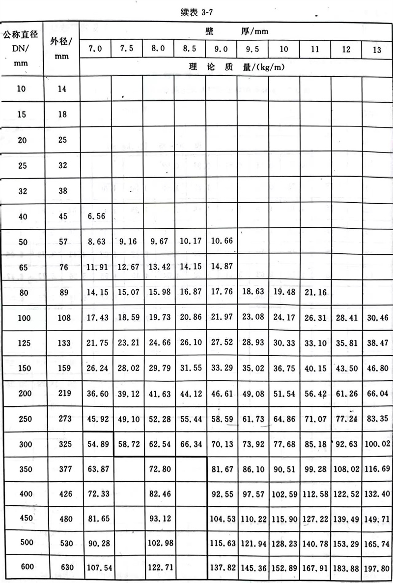 Ⅱ系列(lie)鋼管的尺(chi)寸(cun)和(he)理論質量見(jian)表3-7。