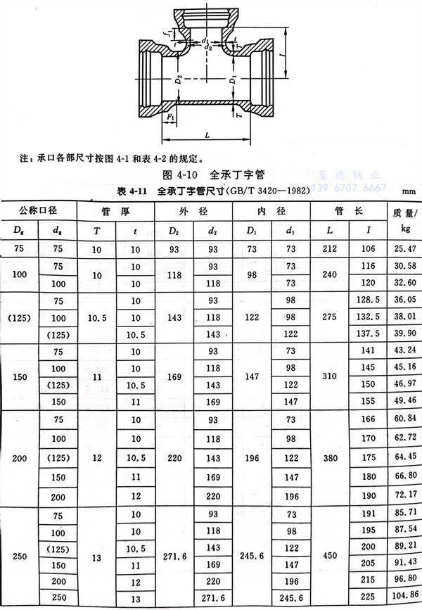 8. 全承丁字管(guan)型式見(jian)圖 4-10 ,尺寸見(jian)表(biao) 4-11 。