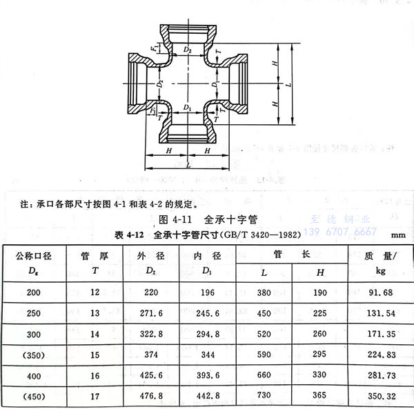 9. 全承十(shi)字管型(xing)式見圖 4-11 ,尺寸見表 4-12 。