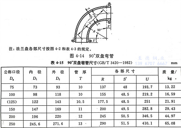 12. 90°雙(shuang)盤(pan)彎管(guan)型(xing)式(shi)見圖 4-14 ,尺寸(cun)見表 4-15 。
