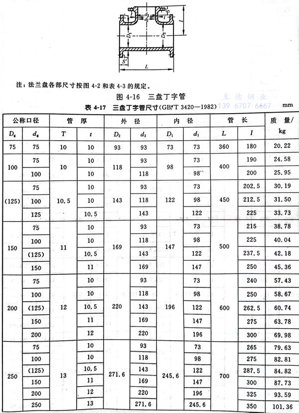 14. 三盤丁字管型式見圖 4-16 ,尺寸見表(biao) 4-17 。