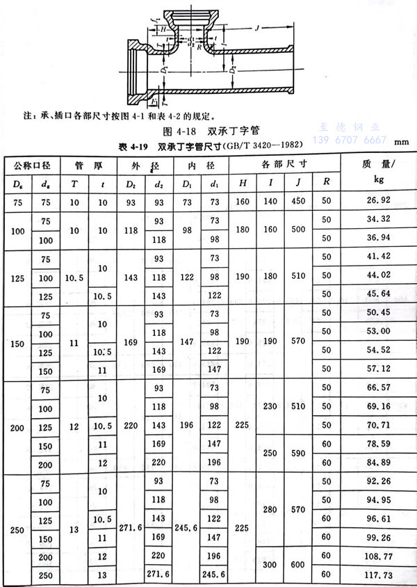 16. 雙承(cheng)丁(ding)字管型式見圖 4-18 ,尺寸見表(biao) 4-19 。