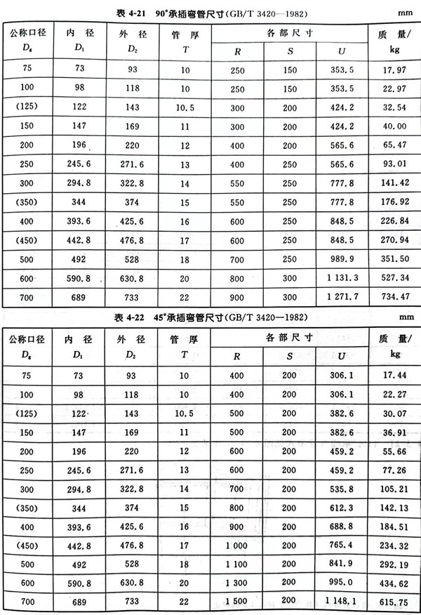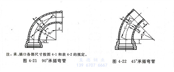 18. 90°承(cheng)插彎管型式見圖(tu) 4-21 ,尺(chi)寸見表 4-21。