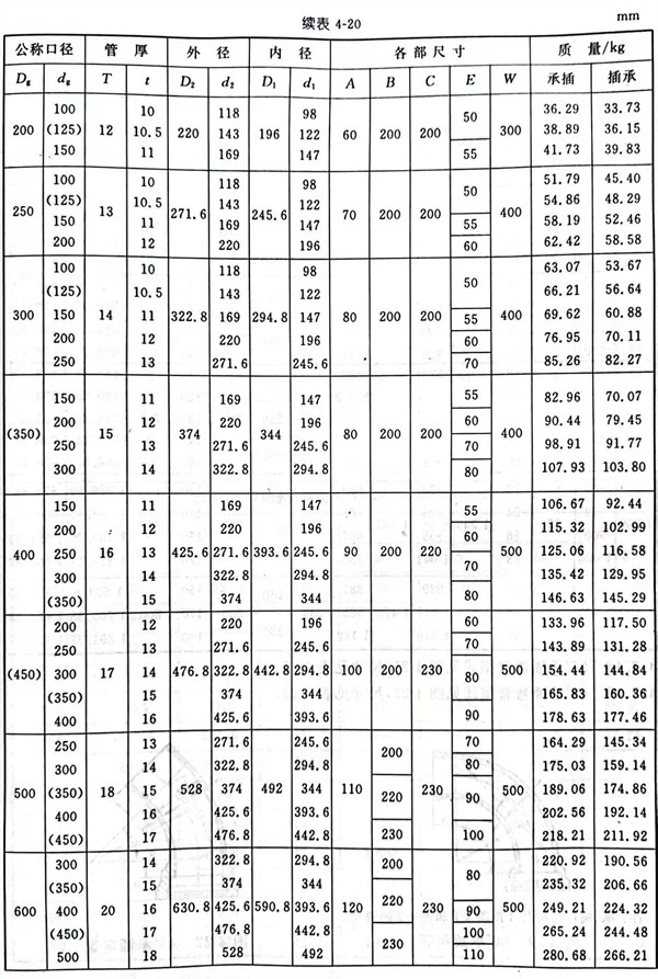 17. 承插(cha)(cha)漸(jian)縮(suo)管(guan)及插(cha)(cha)承漸(jian)縮(suo)管(guan)型(xing)式見圖 4-19和(he)圖 4-20 ,尺寸見表 4-20 。