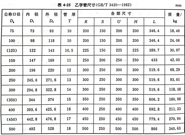 22. 乙字管型式見(jian)圖(tu) 4-25 ,尺寸見(jian)表(biao) 4-25 。