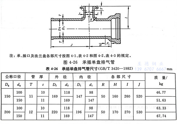 23. 承插(cha)單盤排氣管型式見圖 4-26 ,尺寸見表 4-26 。
