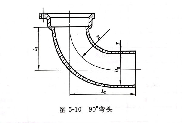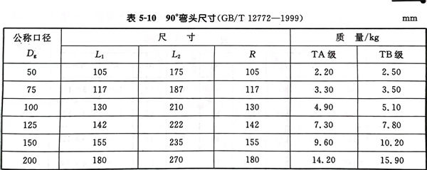 90°彎頭型式(shi)見圖 5-10 ,尺寸(cun)見表 5-10 。