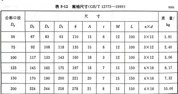 套袖型(xing)式見圖 5-12 ,尺寸見表(biao) 5-12 。