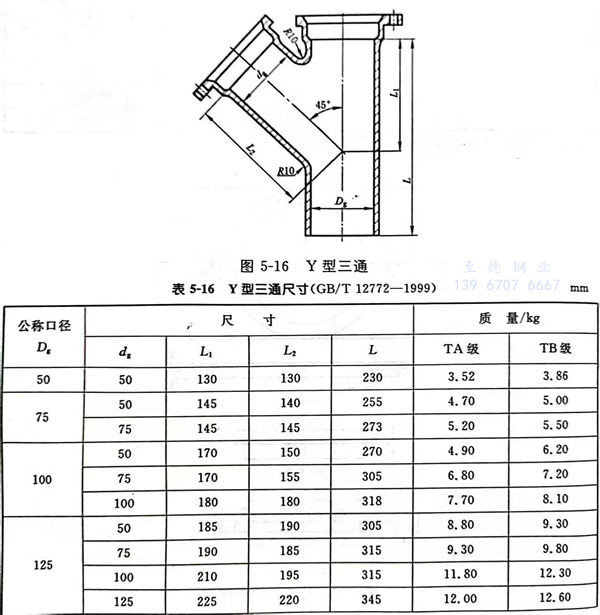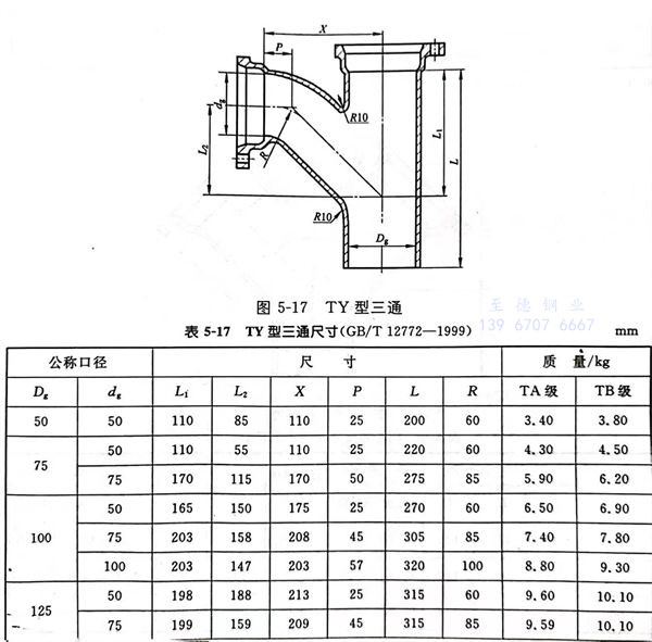 TY型三通型式見(jian)圖 5-17,尺寸見(jian)表 5-17。