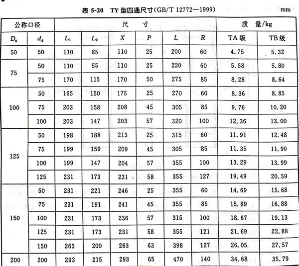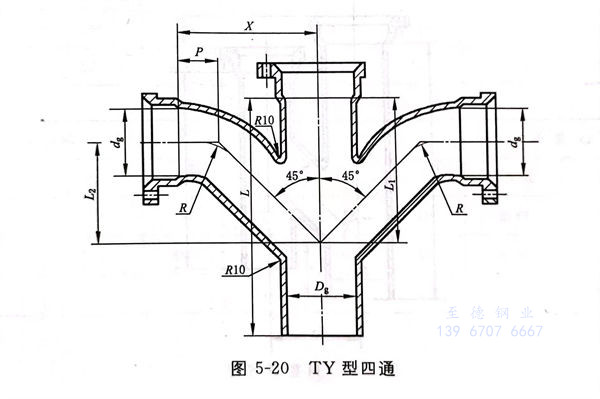 TY型(xing)四通(tong)型(xing)式見圖 5-20,尺寸見表 5-20。