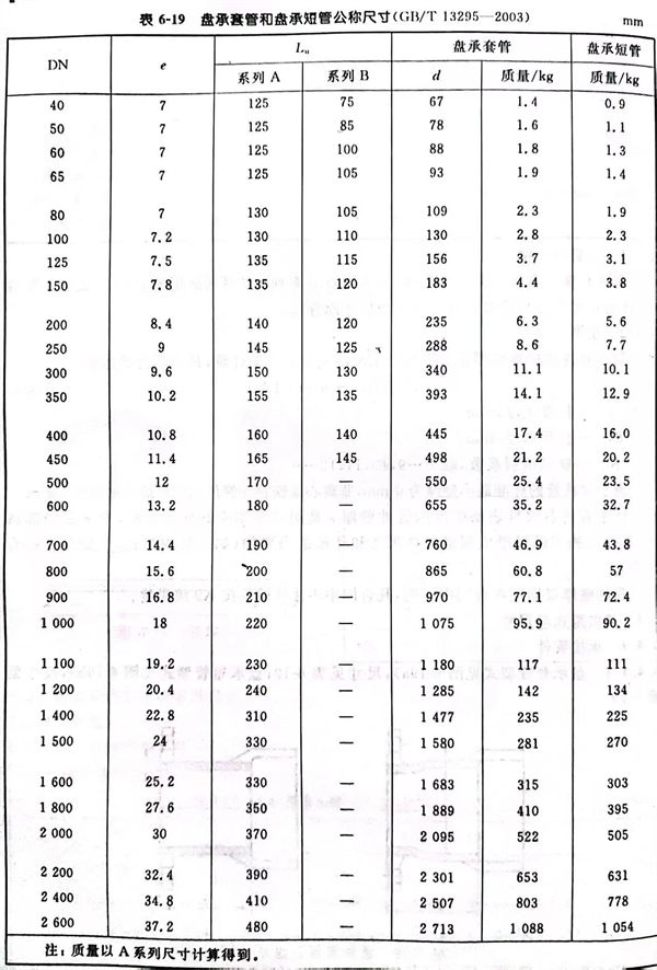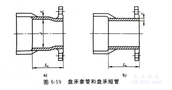 盤承套(tao)管型式見圖6-19a),尺寸(cun)(cun)見表6-19;盤承短管型式見圖6-19b),尺寸(cun)(cun)見表6-19。