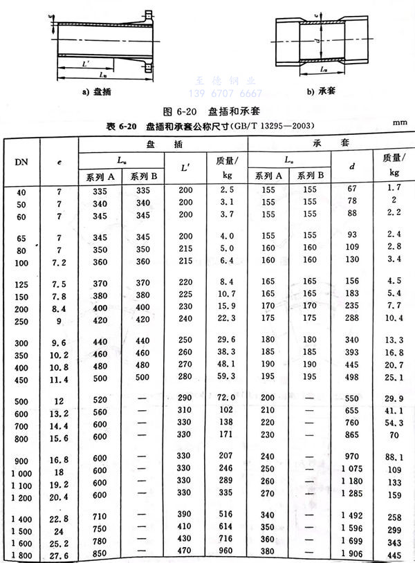 盤插型式見圖6-20a),尺寸見表6-20;承套型式見圖6-20b),尺寸(cun)見表6-20;