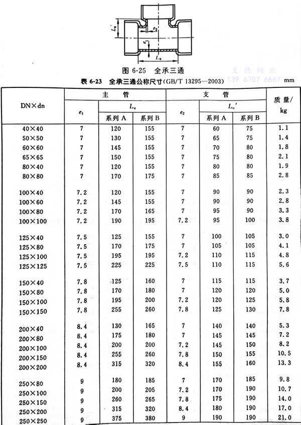 全(quan)承三通(tong)型(xing)式見圖 6-25 ,尺寸見表(biao) 6-23 。