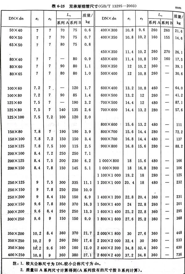 雙承漸(jian)縮管型式見圖 6-27 ,尺(chi)寸見表 6-25 。