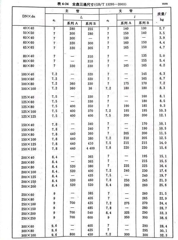 全盤三通(tong)型式見圖6-36,尺寸見表6-34。