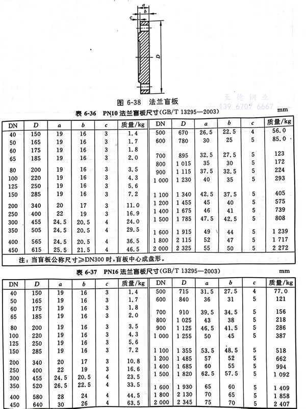 PN10和(he)(he)PN16 法蘭盲板型式見(jian)圖6-38,尺寸見(jian)表(biao)6-36和(he)(he)表(biao)6-37;PN25和(he)(he)PN40法蘭盲板型式見(jian)圖6-38,尺寸見(jian)表(biao)6-38和(he)(he)表(biao)6-39。