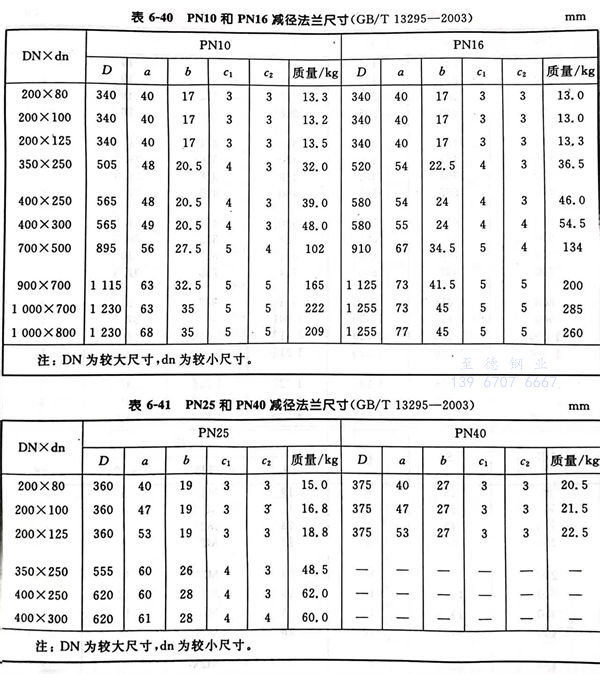 PN10和(he)PN16 減(jian)徑法蘭型式(shi)見(jian)圖6-39,尺寸見(jian)表6-40;PN25和(he)PN40 減(jian)徑法蘭型式(shi)見(jian)圖6-40,尺寸見(jian)表41。