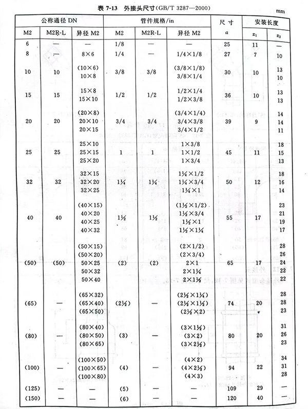 外(wai)接頭型式見圖 7-12 ,尺寸見表 7-13 。
