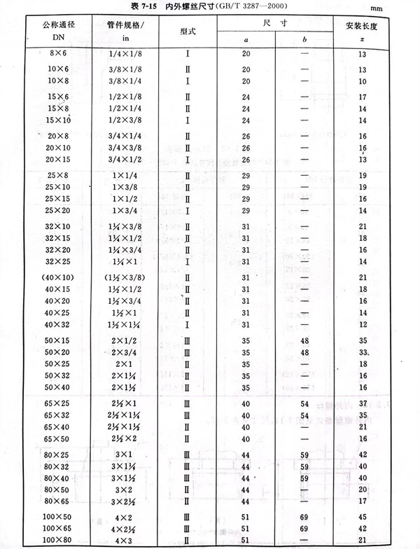 內外螺(luo)絲(si)型式見圖 7-14 ,尺寸見表 7-15 。
