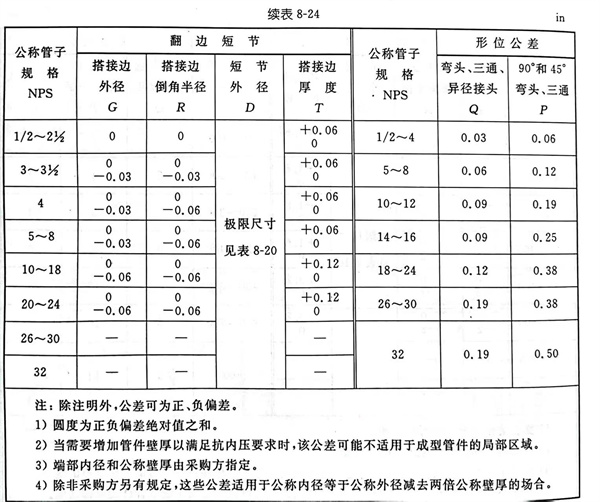 a. 英制尺(chi)寸的管件尺(chi)寸公差簡圖見圖8-21。