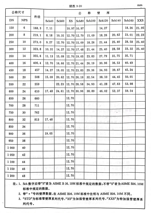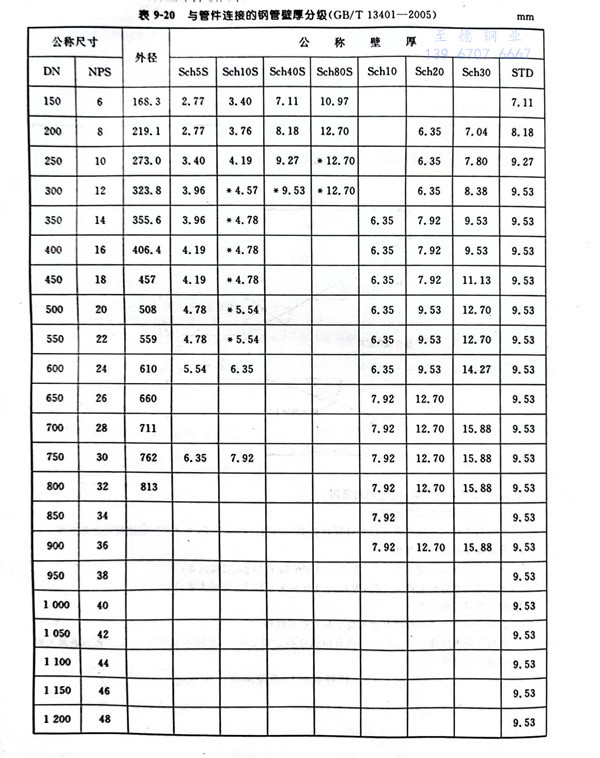 與管件連接的鋼管的壁厚分(fen)級見表 9-20.
