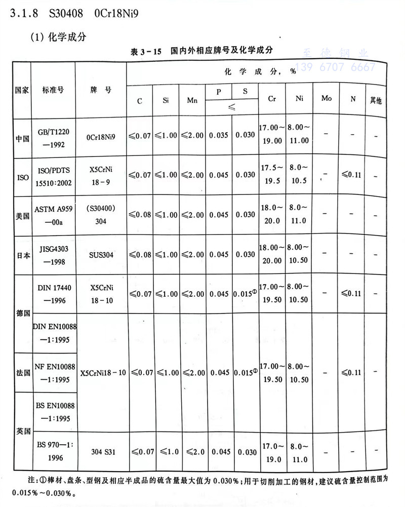S30408 0Cr18Ni9 不銹鋼主要(yao)特性和用途