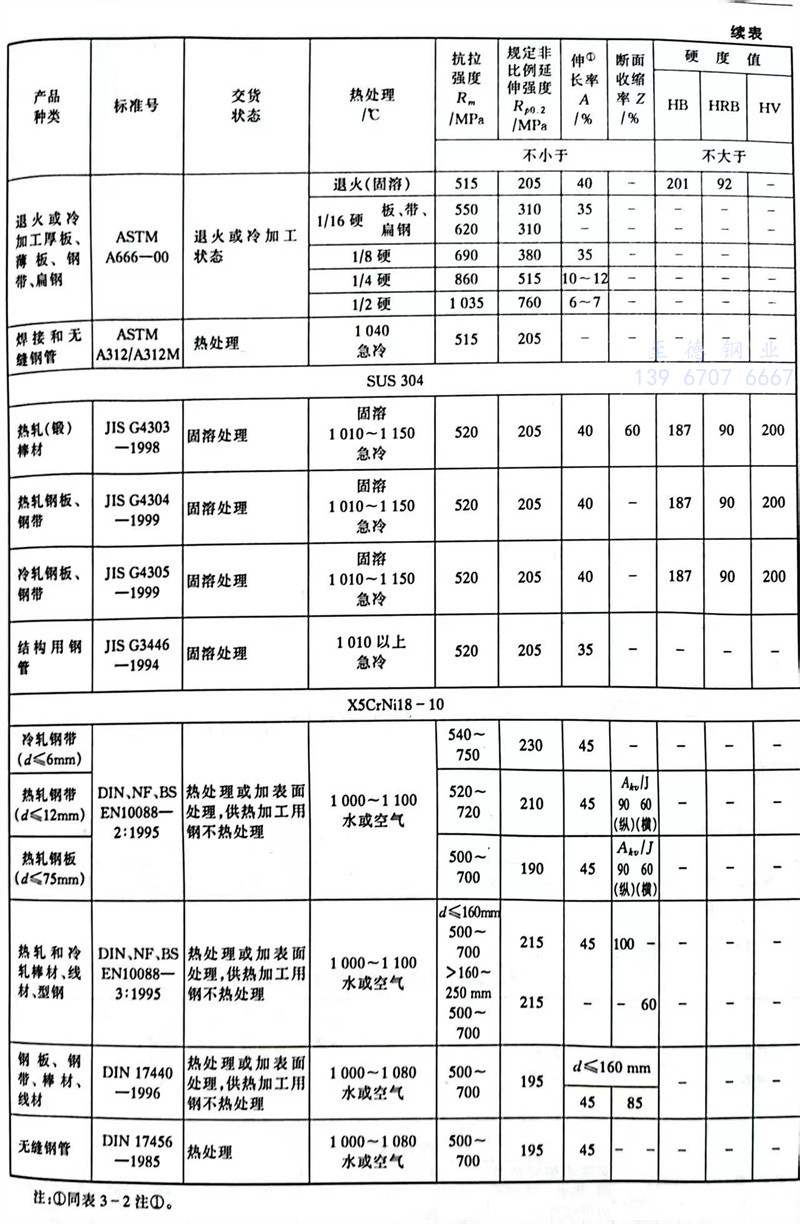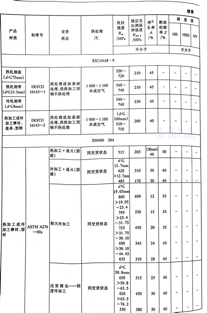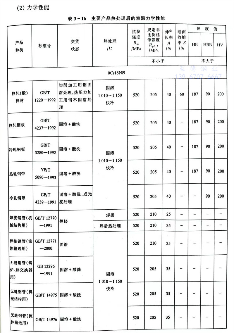 是(shi)奧氏體型不銹鋼中(zhong)生產(chan)量和使用量最大的(de)牌(pai)號之一。具有優良的(de)耐腐蝕性(xing)(xing)能(neng)(neng)以及(ji)冷加工沖壓性(xing)(xing)能(neng)(neng)。對(dui)氧化性(xing)(xing)酸(如(ru)硝酸)具有很強的(de)耐腐蝕性(xing)(xing)。對(dui)堿溶液及(ji)大部分有機酸和無機酸亦有一定的(de)耐腐蝕能(neng)(neng)力。低(di)溫性(xing)(xing)能(neng)(neng)較好,在-180℃條件下(xia)強度(du)、伸長率(lv)和斷面收縮率(lv)都很好。