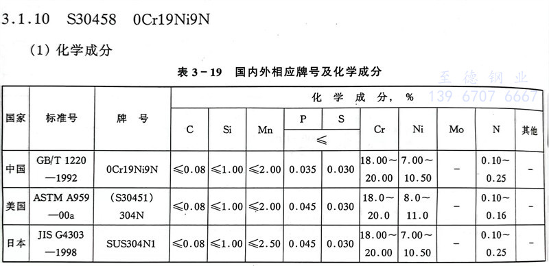S30458 0Cr19Ni9N 不銹鋼主(zhu)要特性和用途