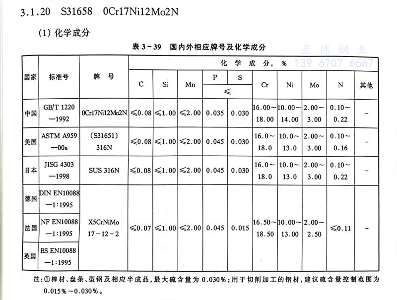S31658 0Cr17Ni12Mo2N 不銹鋼主(zhu)要特性和(he)用途