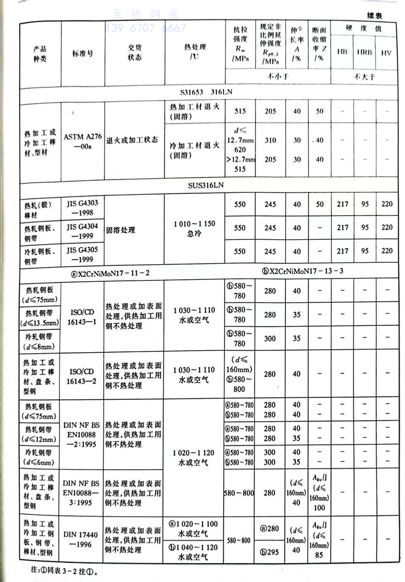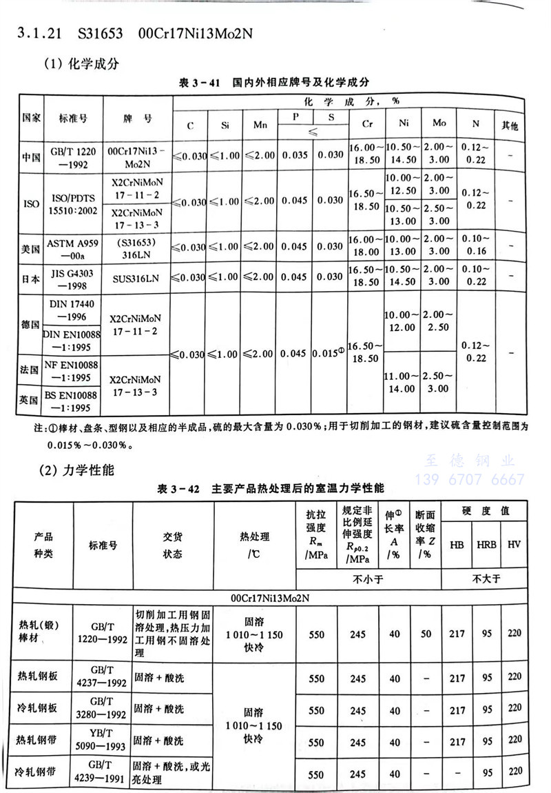 S31653 00Cr17Ni13Mo2N 不銹鋼主要特(te)性和用途