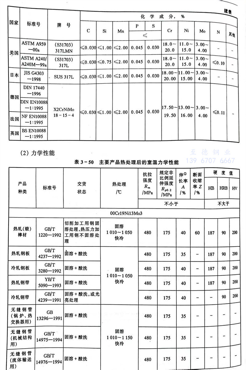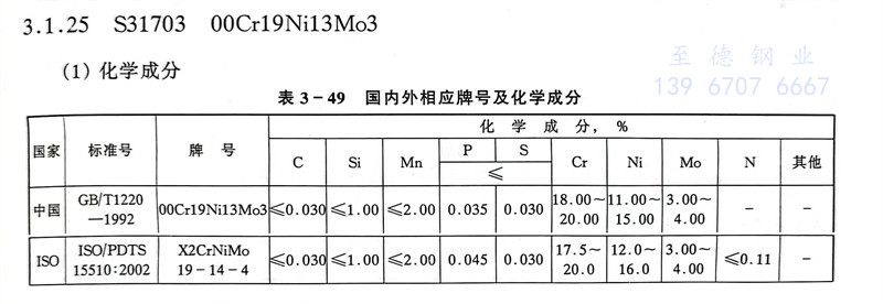 S31703 00Cr19Ni13Mo3 不(bu)銹鋼(gang)主要特性和用途